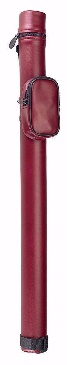 1 butt/2 shaft leatherette hard PVC shell lined pool cue case with silk sleeves that brush away moisture, shoulder strap, zipper closure and single accessories pocket. Available in nine colors.